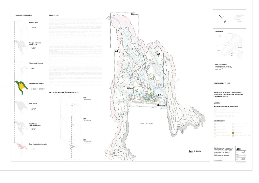 Localizada na face sudoeste do arquipélago de Ilhabela/SP, a comunidade da praia do Bonete reivindicou ao poder público a execução de projetos para uma série de equipamentos, bem como de diretrizes para o planejamento territorial caiçara visando atender o crescimento populacional e aumento de edificações na região.